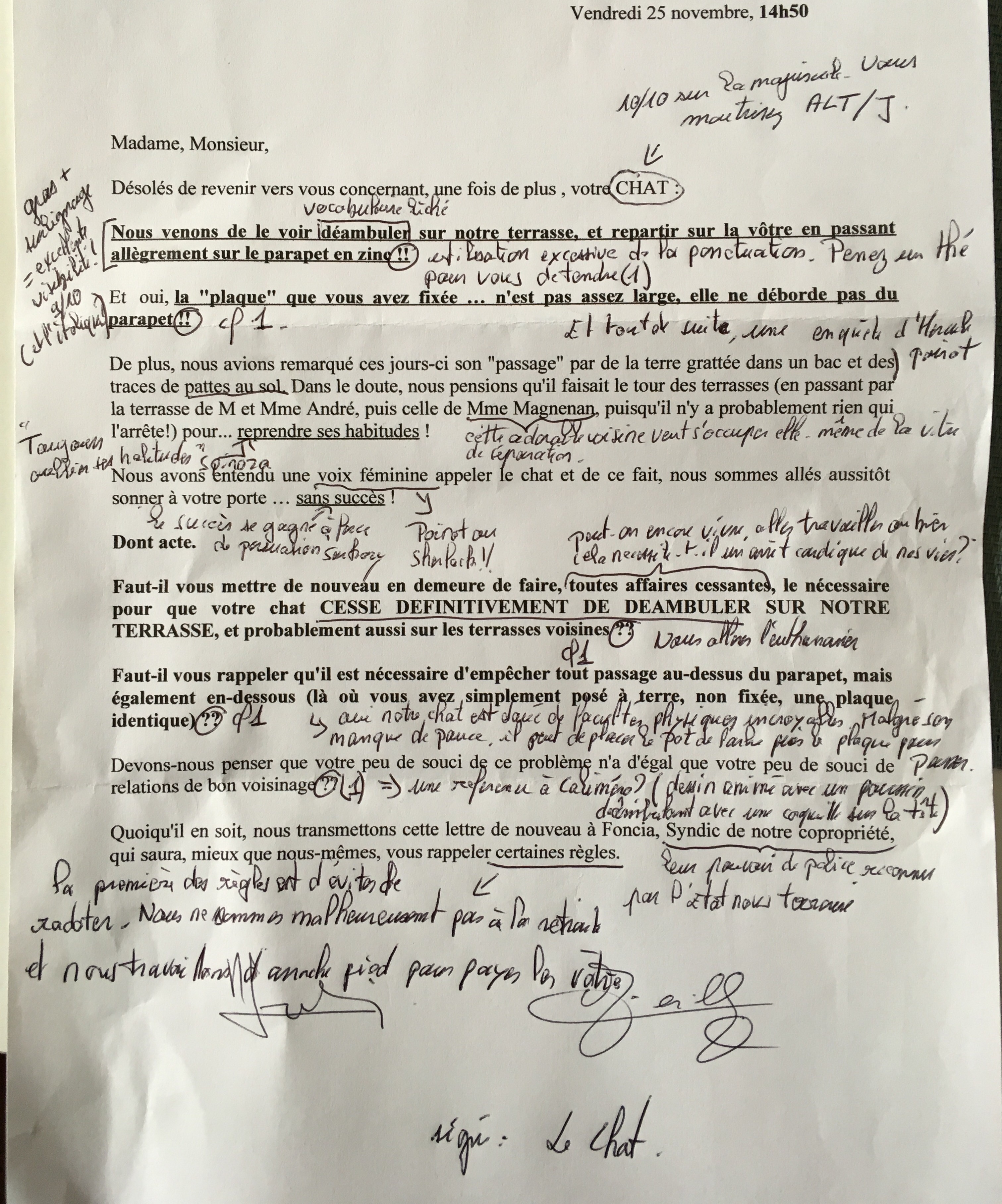 Veuillez excusez notre chat qui a souhaité introduire notre courrier.