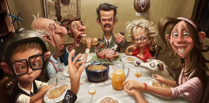 L’oncle savait que le Sylvain, c’était le genre « le petit chef ». Déjà, tout gamin, le « sans cou » s’amusait à commander « les sans dents ». Il distribuait des ordres stupides. Tout ce qui intéressait Sylvain, c’était d’avoir des exécutants. Il donnait des instructions stupides, comme ramasser des pierres ou des feuilles en plein hiver. L’oncle se remémora ce passé de petit con et se leva, tel un justicier, à la vitesse de l’éclair. Il attrapa la soupière de maquereau et l’éclata sur la tête du fils de mes deux. Puis il lui lâcha, dans un souffle :