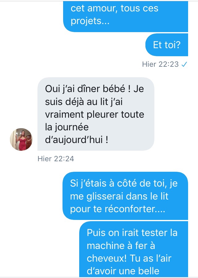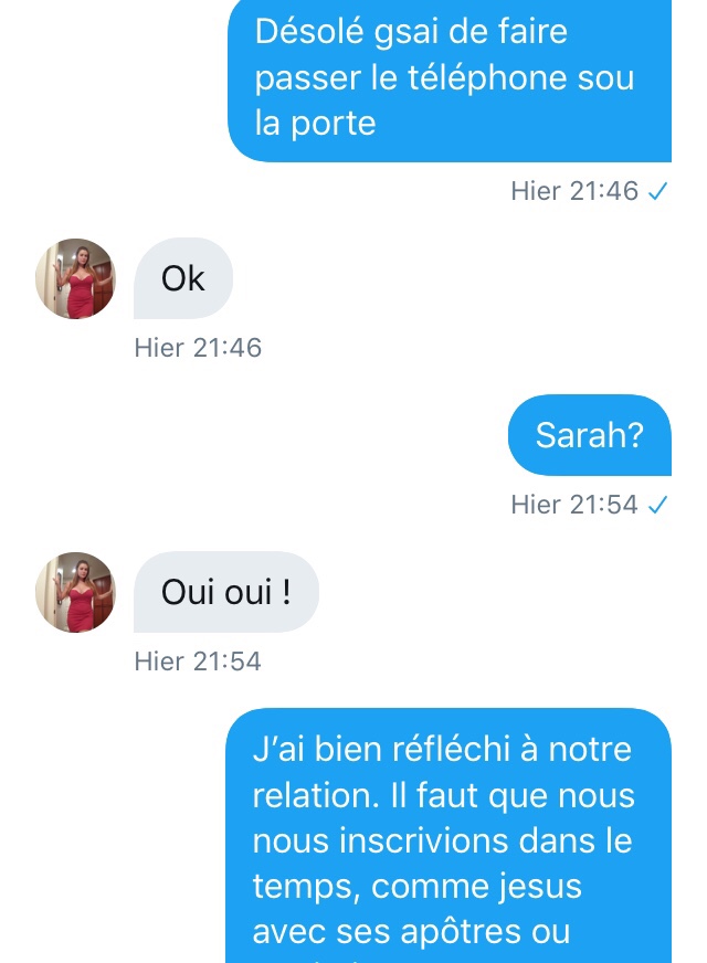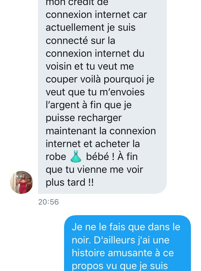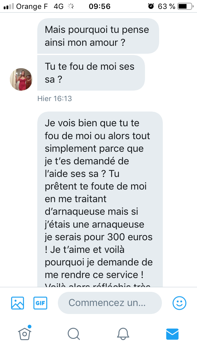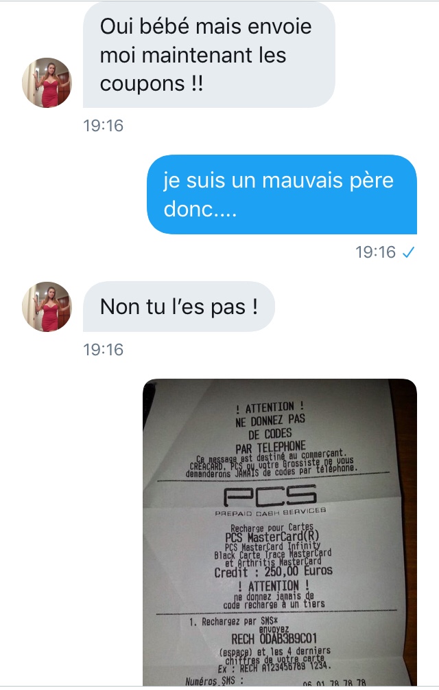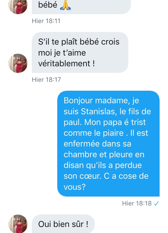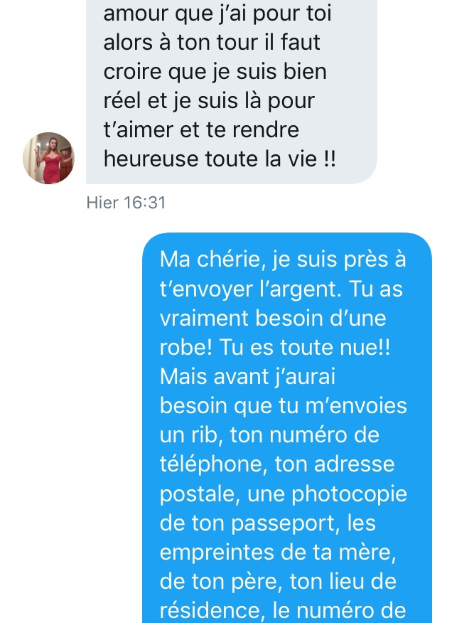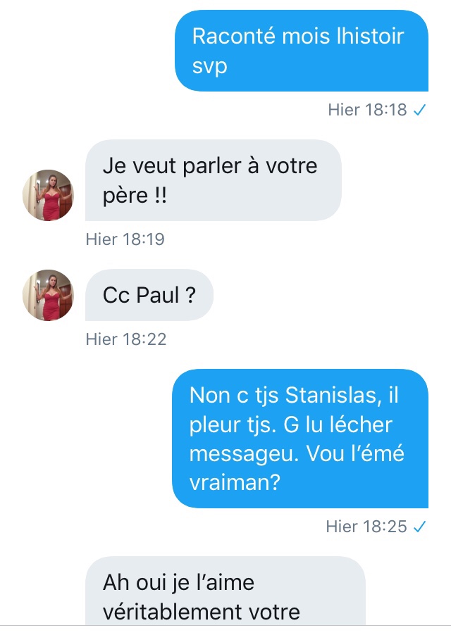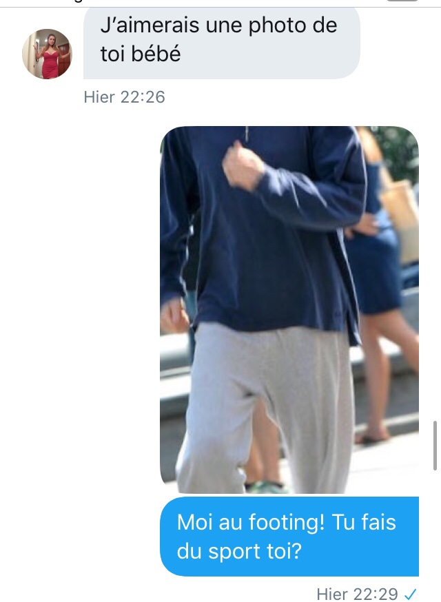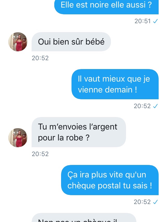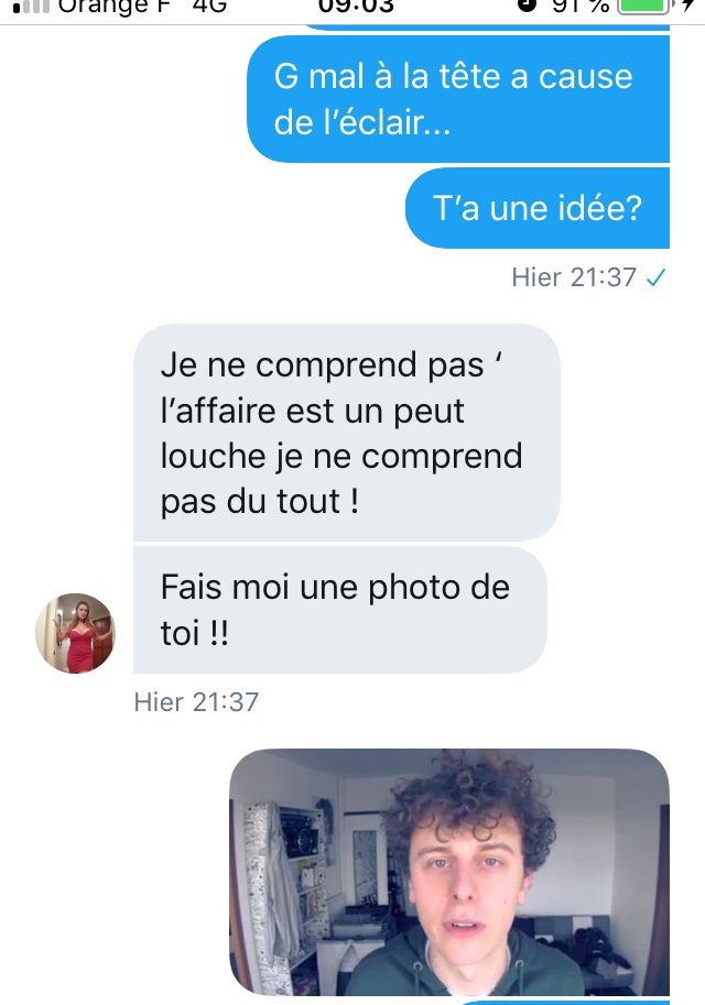 On remarque qu’il ne s’agit pas de la même personne sur la photo et qu’il fait jour derrière. Le piège est grossier…
