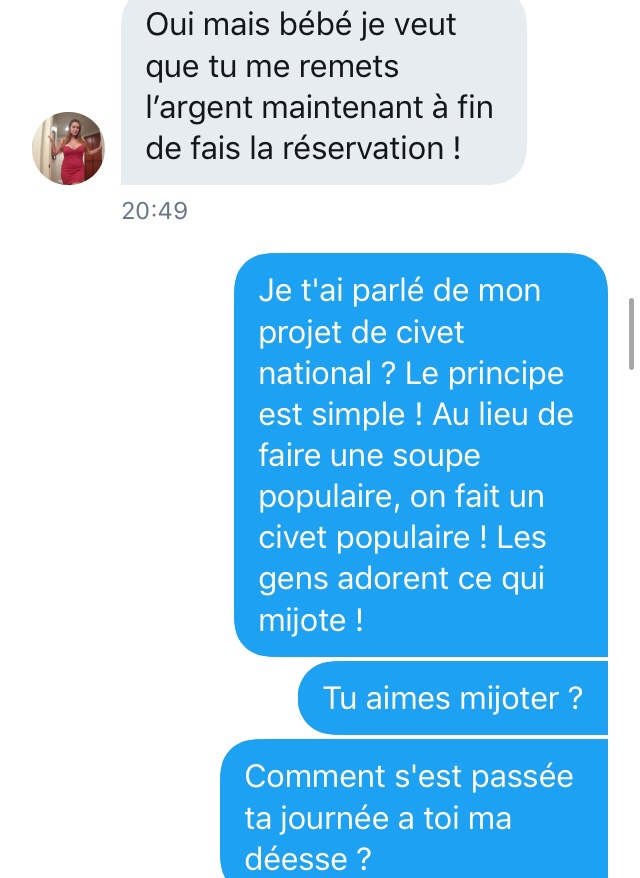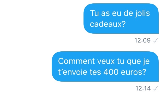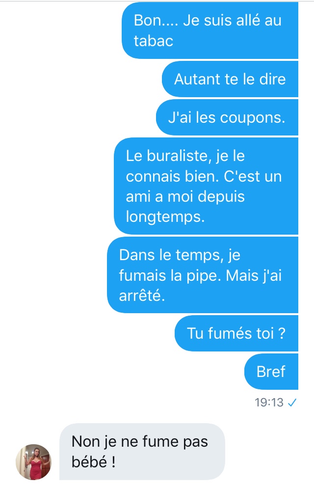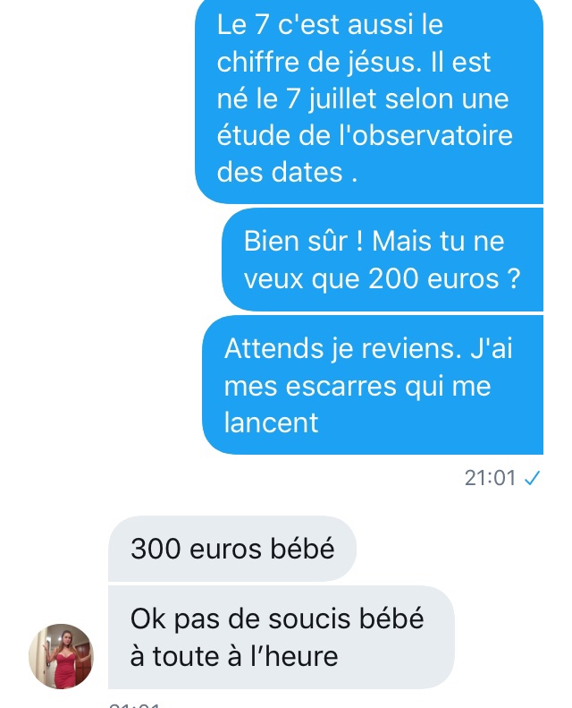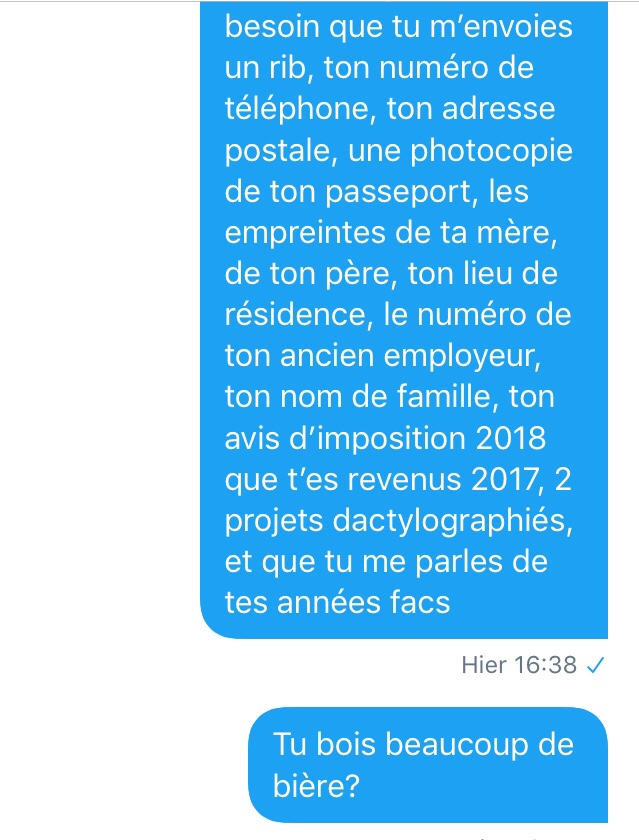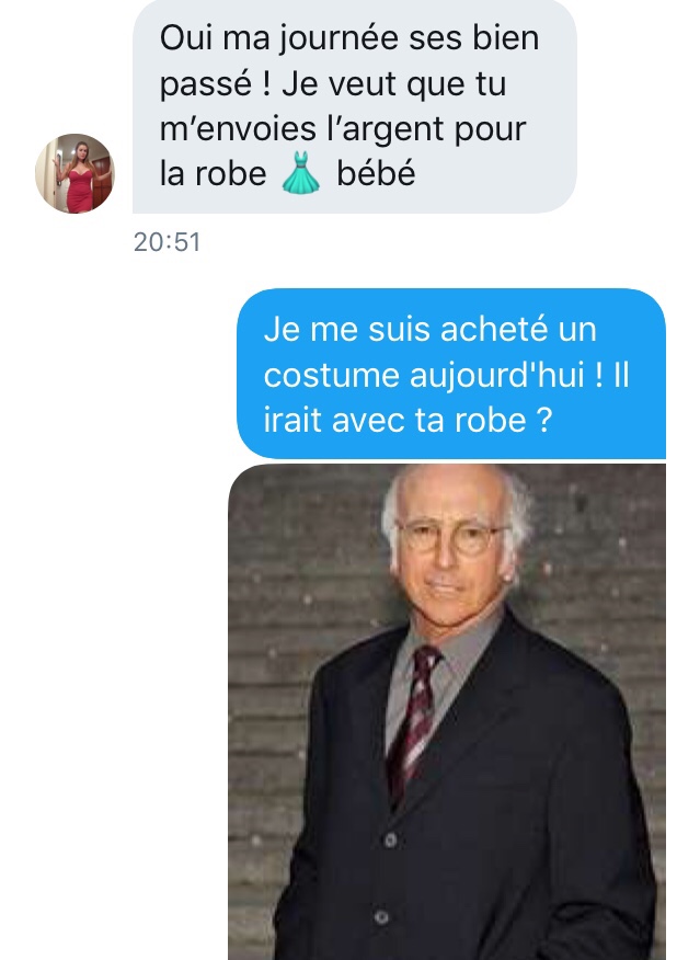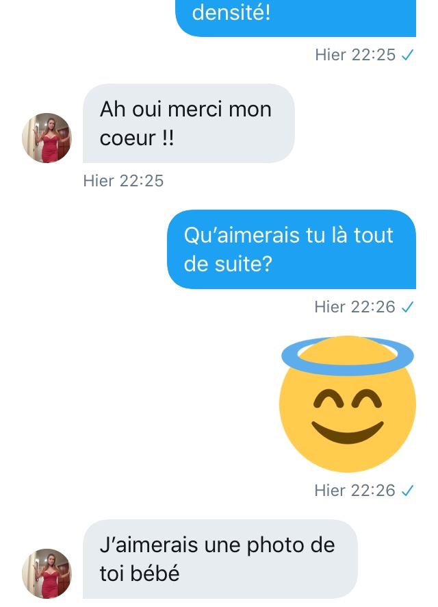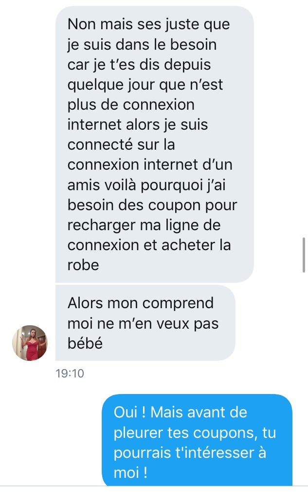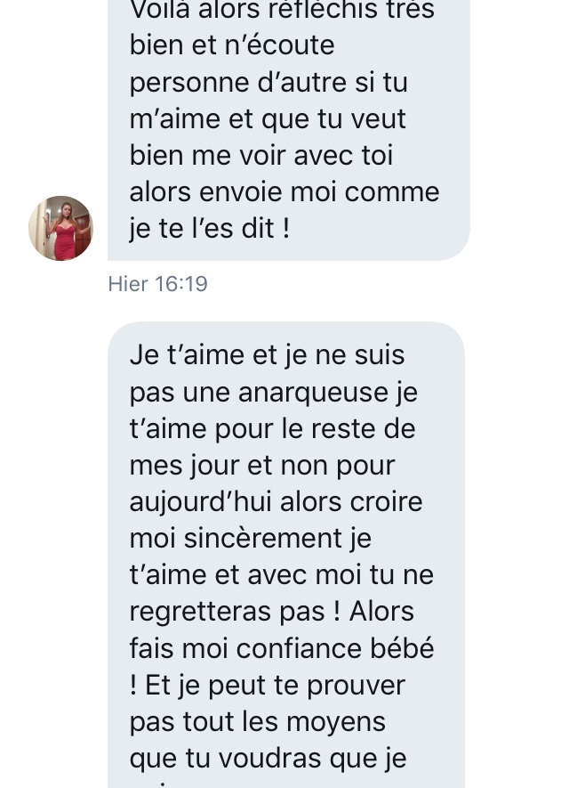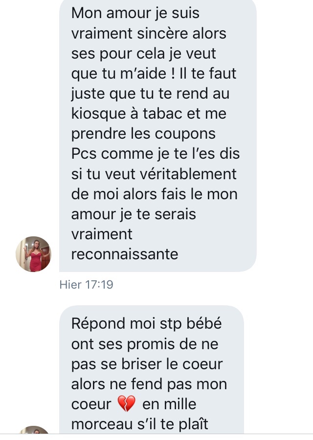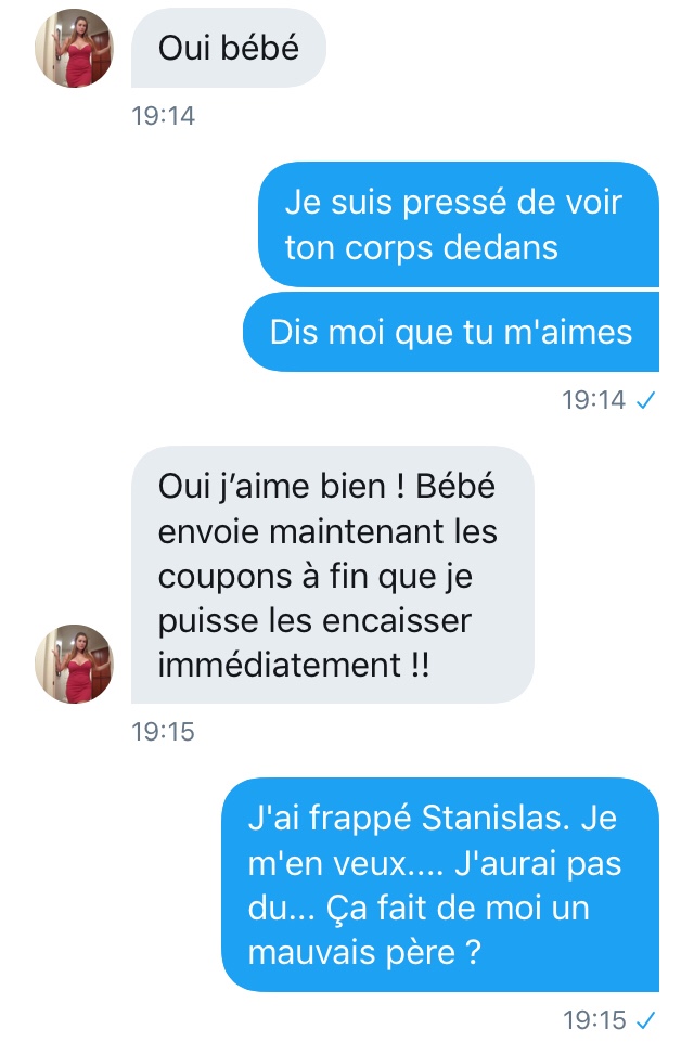 On remarque qu’il ne s’agit pas de la même personne sur la photo et qu’il fait jour derrière. Le piège est grossier…