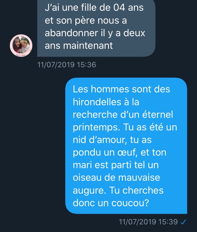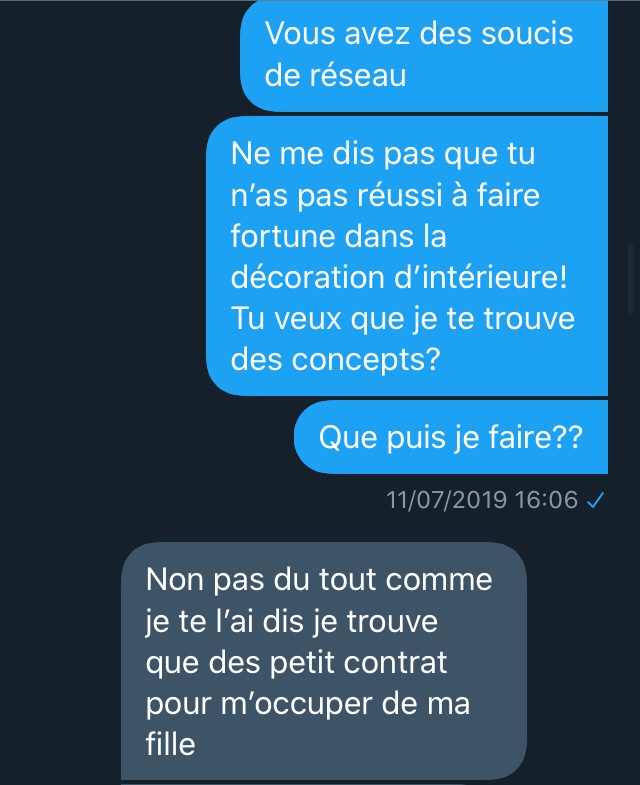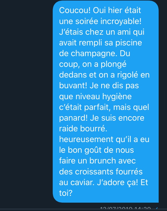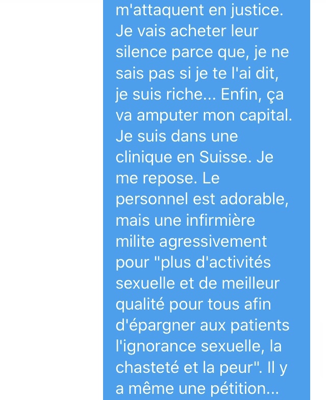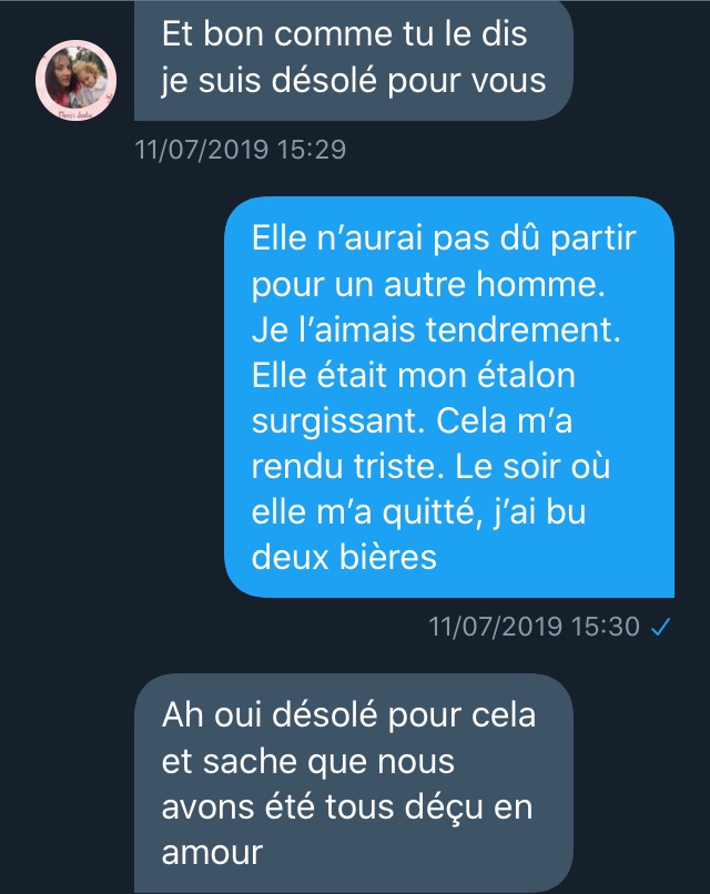 Ma séparation avec Sarah m’avait meurtrie le cœur et l’âme. Heureusement, Nathalie (une amie de Sarah) m’a contacté. Elle aussi cherchait l’amour. Elle n’avait pas le sou, et de sérieux soucis de connexion. Je suis tombé sous le charme. Et puis, je suis si riche…. (À suivre)