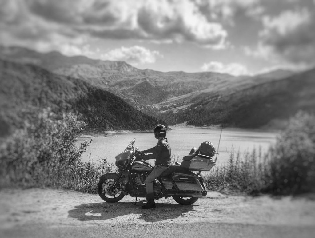 La moto, c’est voyager léger. Parce que moins on a d’affaires, moins on a de soucis. Sur une bécane, le plaisir ne se trouve pas dans l’apparat des virilités citadines, mais relève dans la sinuosité des routes, des parfums des paysages, du souffle du vent sur le visage, de la grandeur du ciel, un ciel tellement grand qu’aucune montagne n’arrive à le chatouiller. La moto, c’est la liberté. La liberté, il y en a partout. Elle est grisante, enivrante, captivante. Il parait qu’il faut juste avoir le courage de la prendre. On finit toujours par la prendre.