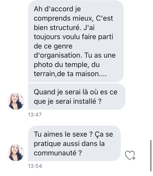 Je tente de voir si je peux la retourner. Monter une secte en Afrique me plairait pas mal….