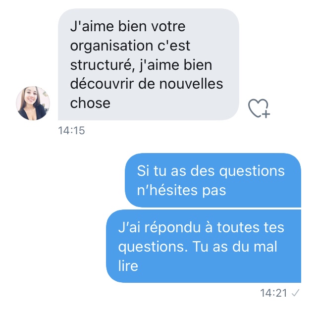 Disons que je change de personnage à chaque fois et que j’ai du temps libre. Ca m’amuse de leur faire perdre leur temps 🙂