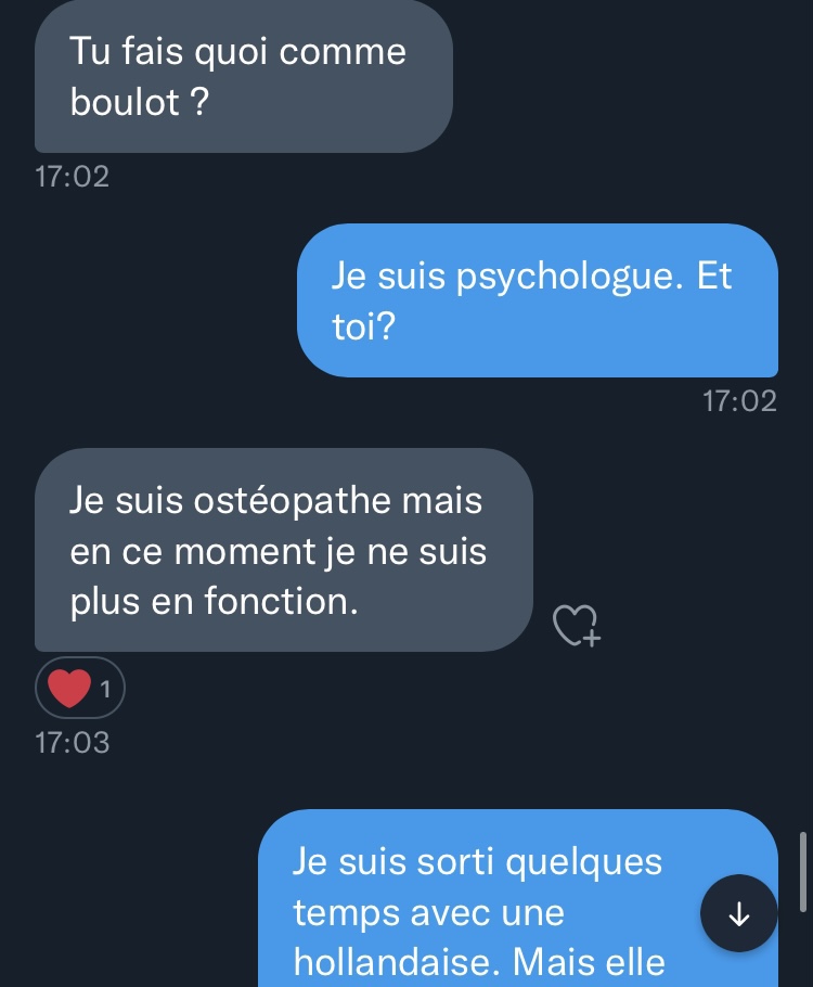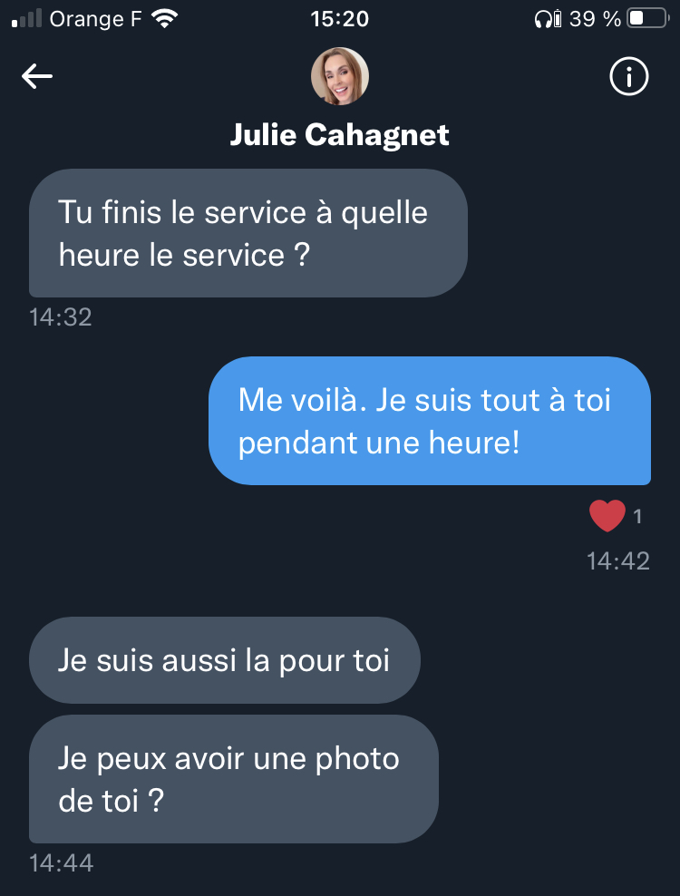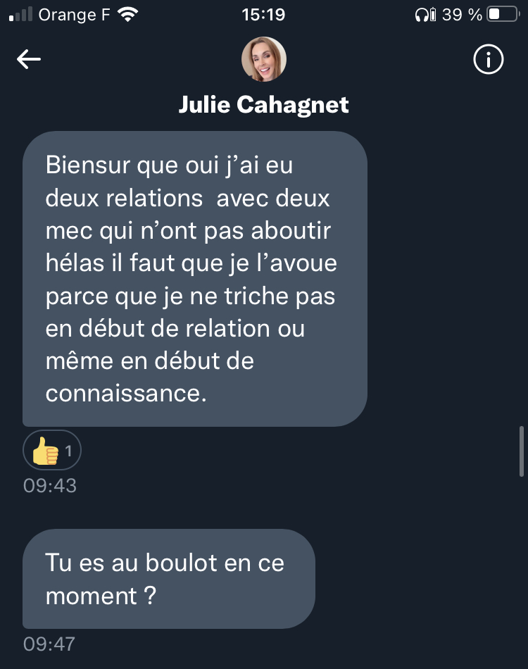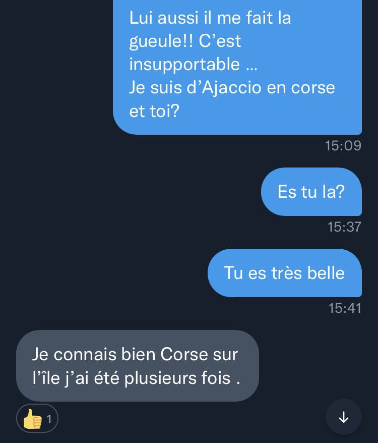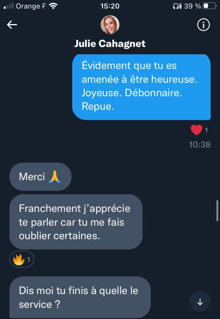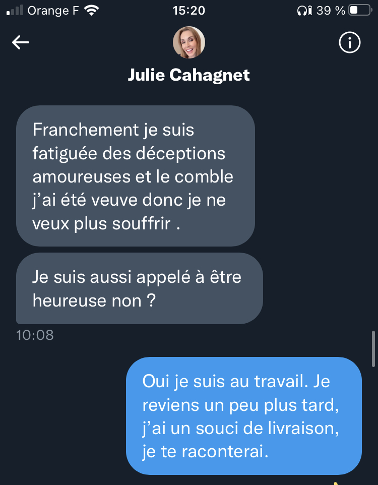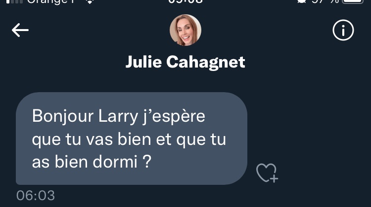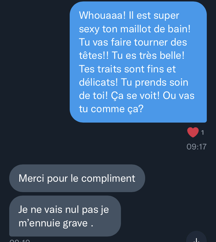 « Sympa, jovial et ouvert d’esprit » ! Elle lit les messages ! Elle joue son rôle à fond ! Ce qui est rare !