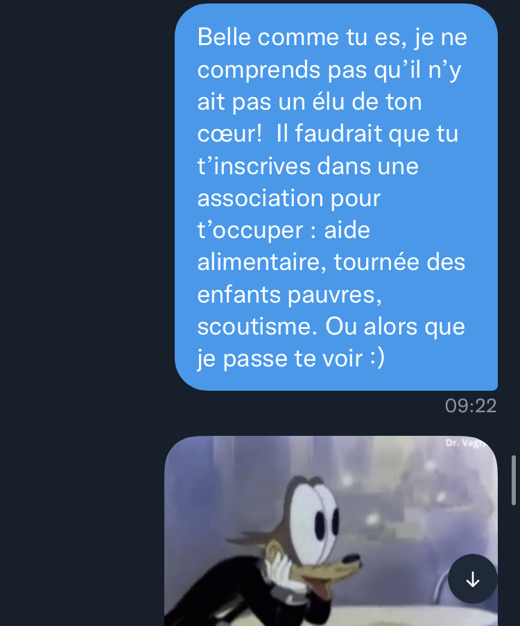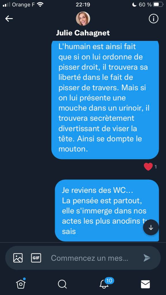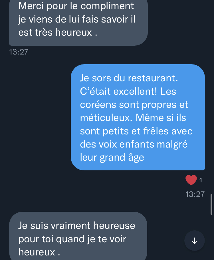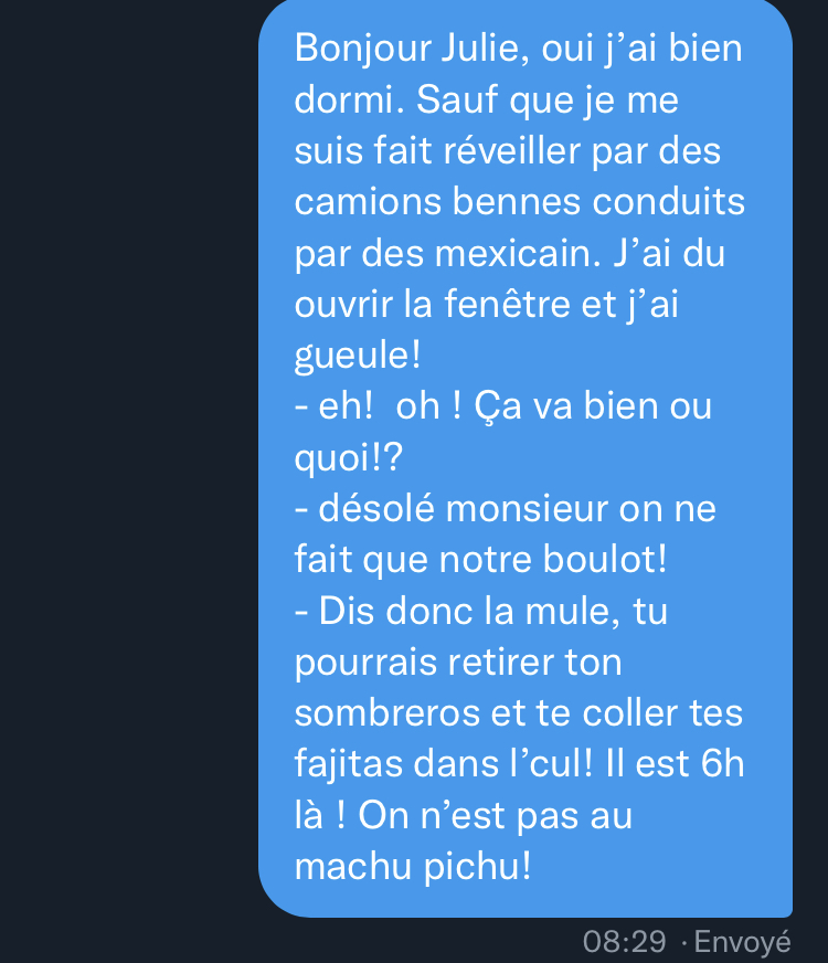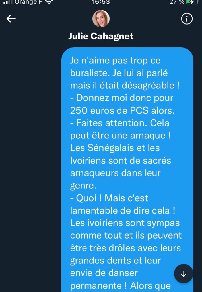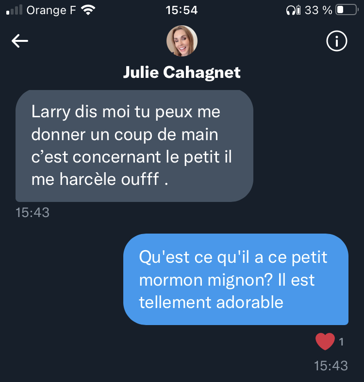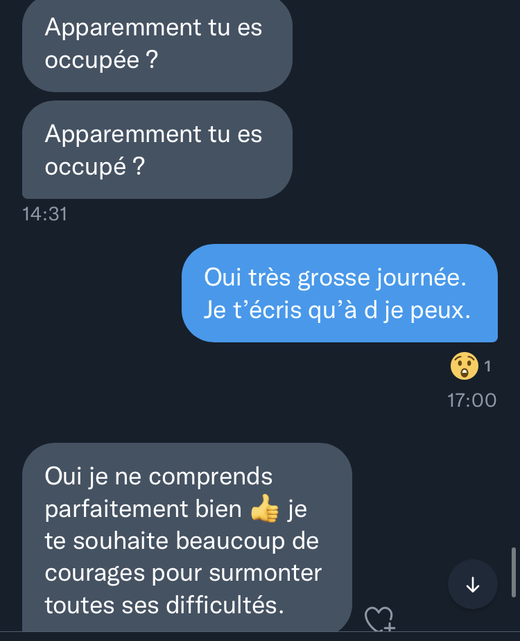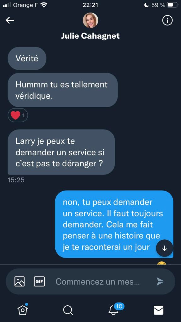 « Sympa, jovial et ouvert d’esprit » ! Elle lit les messages ! Elle joue son rôle à fond ! Ce qui est rare !