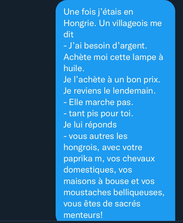 Et si un brouteur devait faire face à un type pénible plein de préjugés sur les nations et les habitants des pays? Pour éviter de me faire taxer de raciste (tout va si vite de nos jours), j’ai étudié de près les 15 clichés par pays et je m’en suis inspiré. Tout le monde en prend pour son grade, les Français et les parisiens également (sont-ils du même pays?)