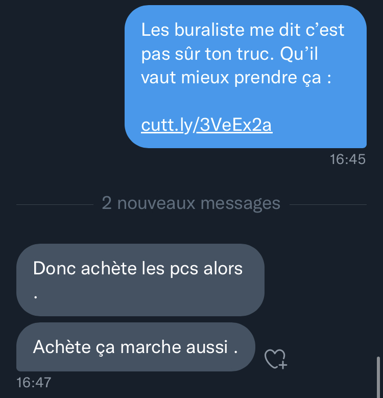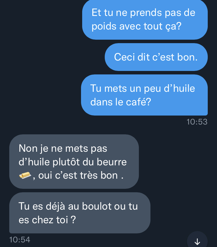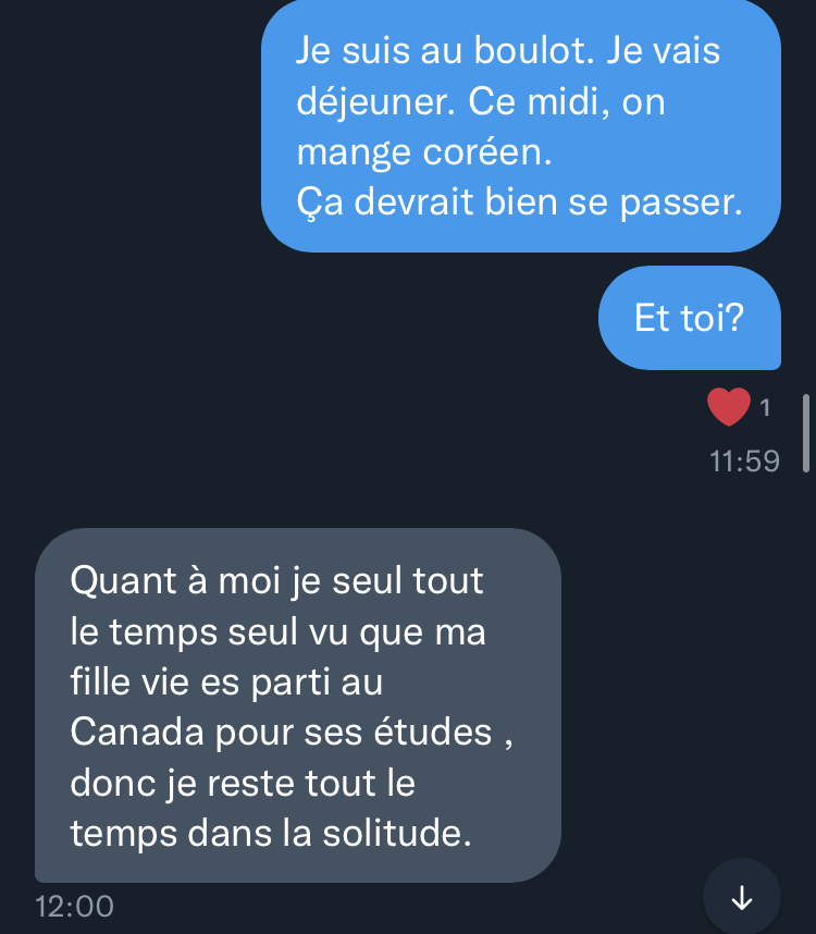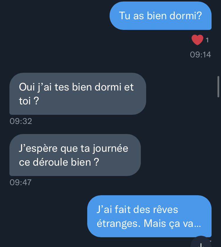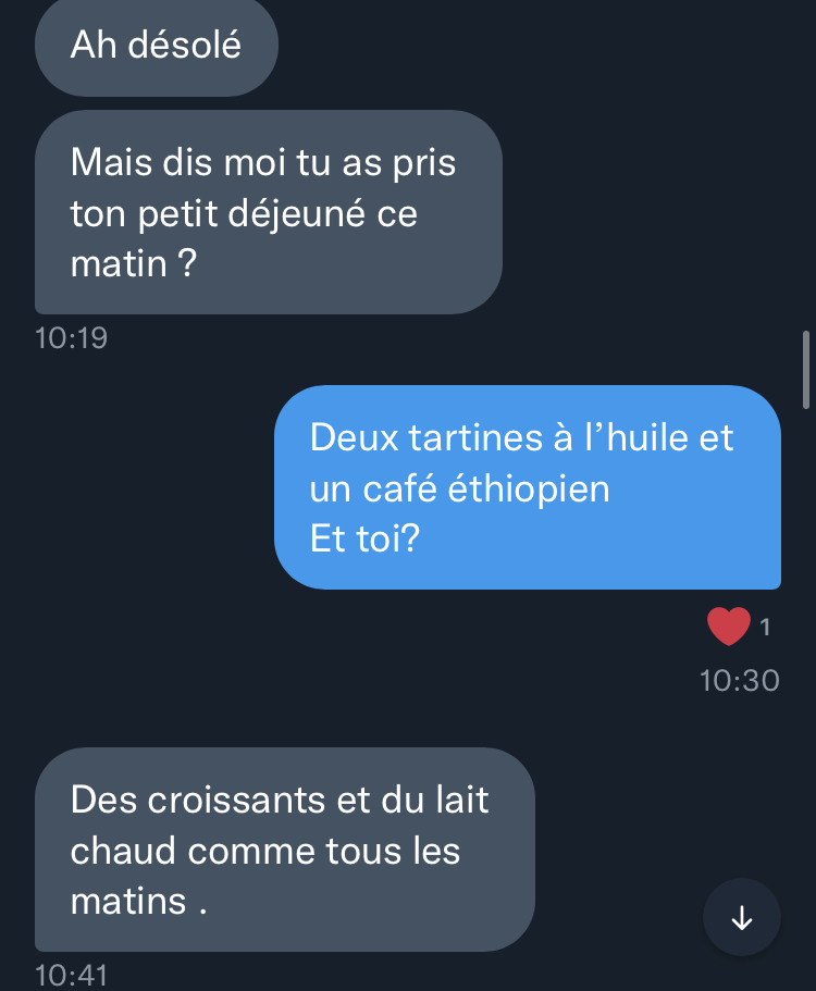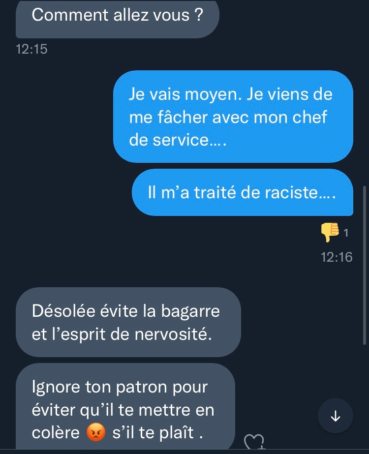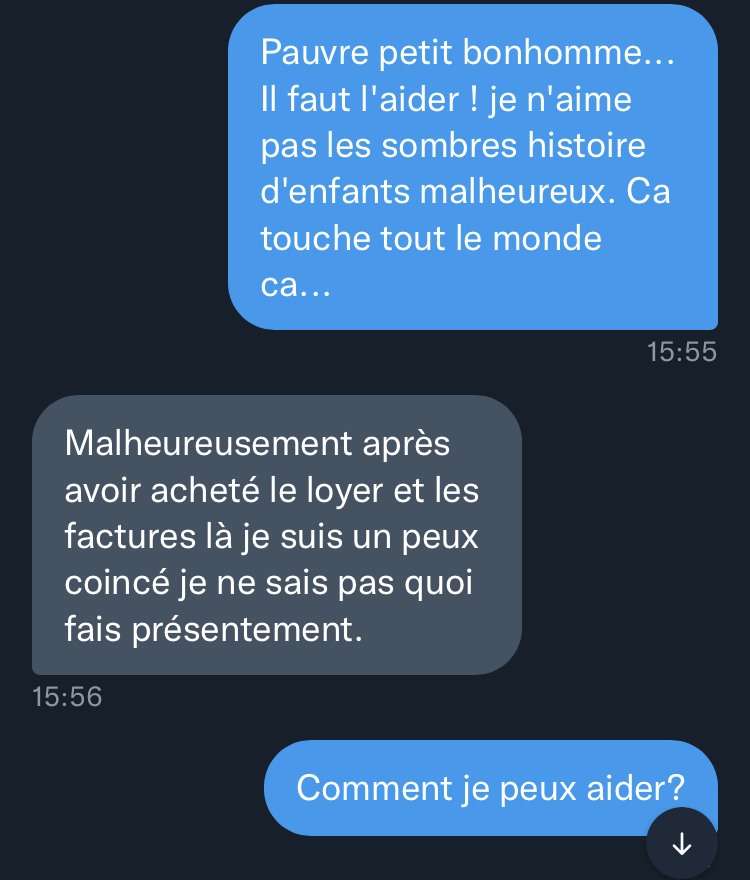 « Oui bien sûr que je vais si bien! » « Que fais tu dans la vie? » « Je suis formateur en projets. Je voudrais inventer une application pour lutter contre la précarisation de l’intelligence artificielle »