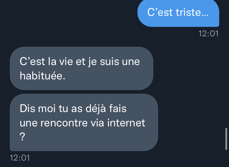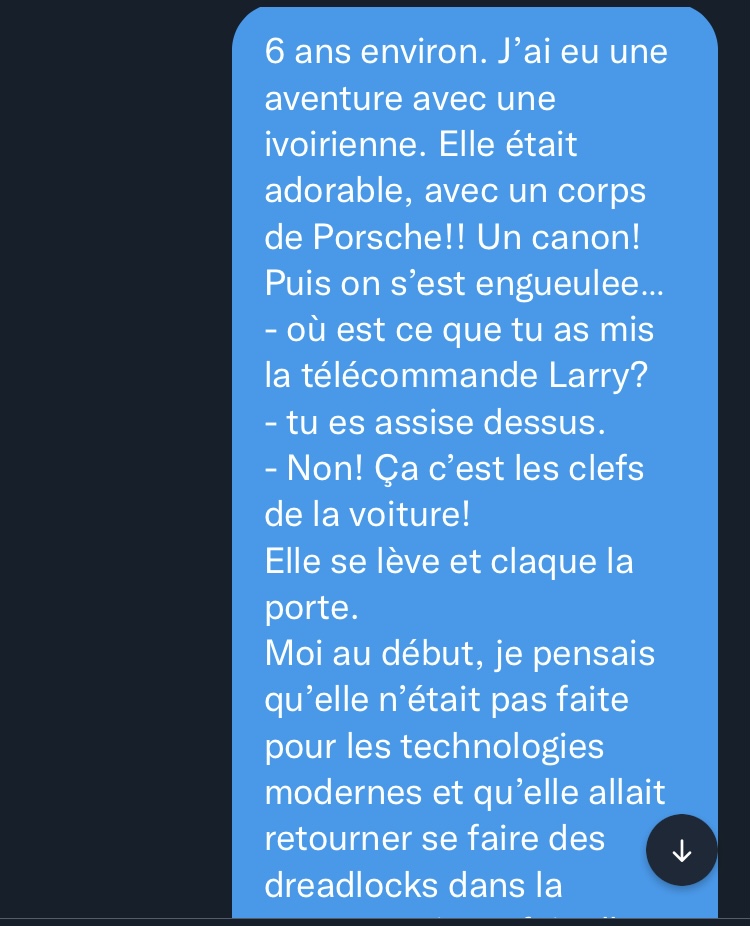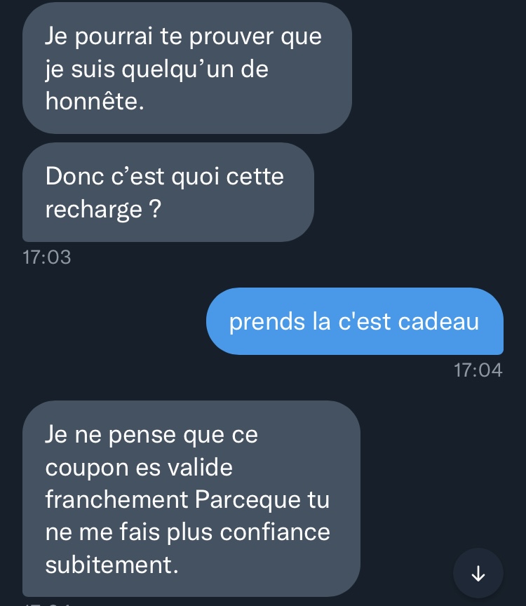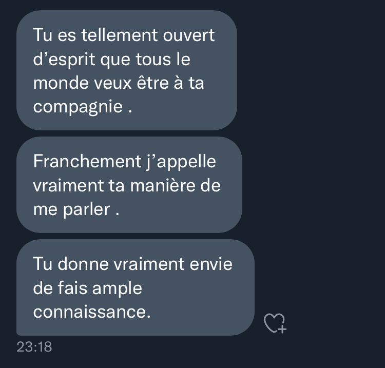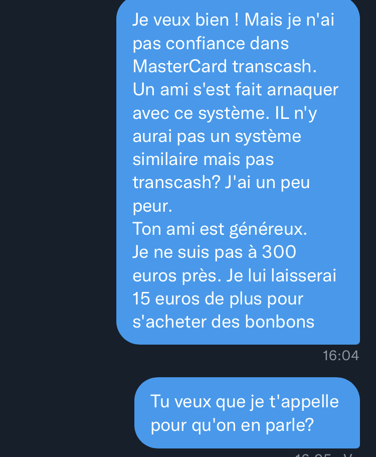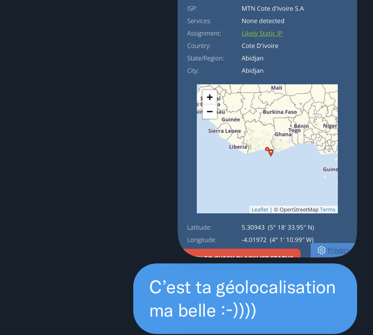 Exceptionnel, hilarant! Quelle farce! Je connaissais le probleme avec les rares victimes qui ont réussi à dépasser leur honte pour franchir la porte de la brigade. Je n’ai jamais eu d’homme, seulement des femmes que l’amour d’un inconnu virtuel avait fait dépenser des sommes importantes. Là je vois le mal par l’autre lucarne. Pas de surprise, c’est toujours le même schéma. C’est tellement gros que je me dis qu’il faut vraiment être perdu pour se laisser avoir…