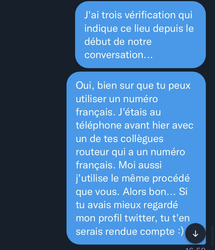 Bien évidemment, je ne lui donne pas mon vrai numéro mais je passe par une application fantôme.