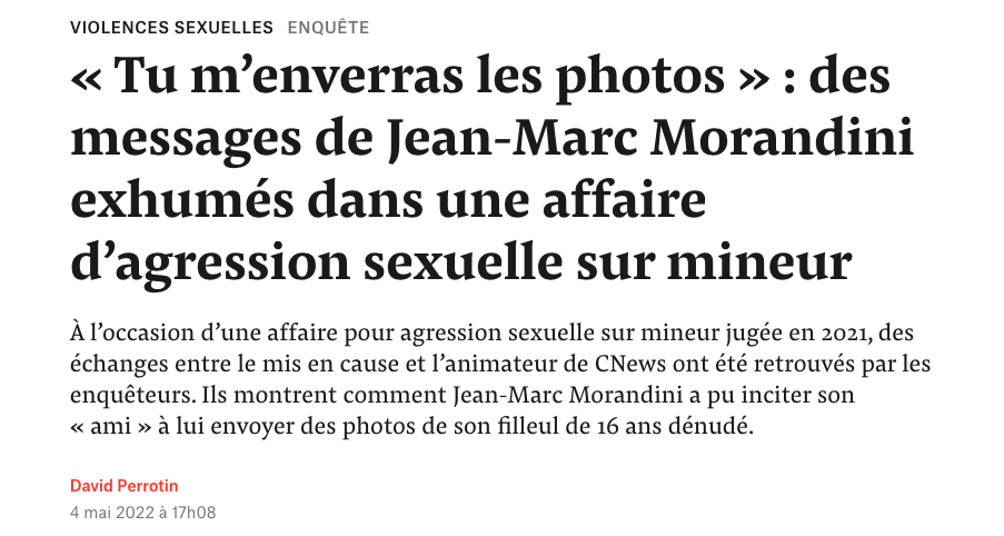 Journal écrit en 2016 suite au licenciement des salariés d’iTELE et à l’arrivée de Jean-Marc Morandini dans le groupe. En janvier 2022, le producteur a été renvoyé en procès pour «harcèlement sexuel» et «travail dissimulé».